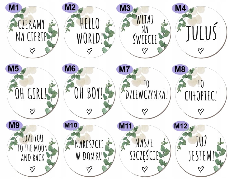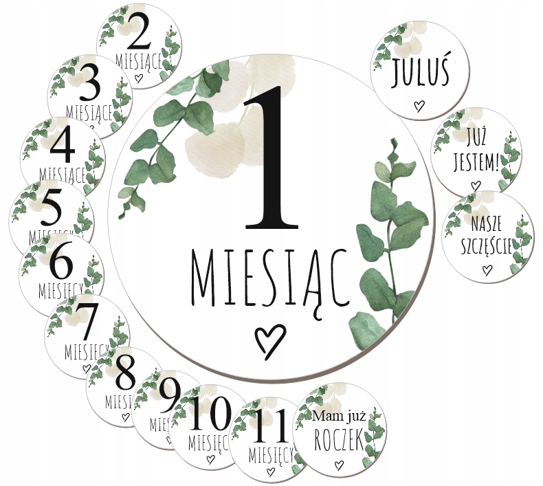 ZESTAW EUKALIPTUS 15 szt (12 miesięcy i 3 teksty do wyboru)
