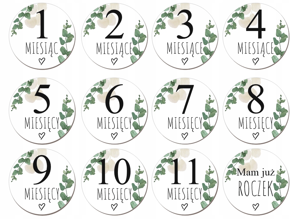 ✅ 12 tabliczek reprezentujących 11 miesięcy i "Mam już ROK"
